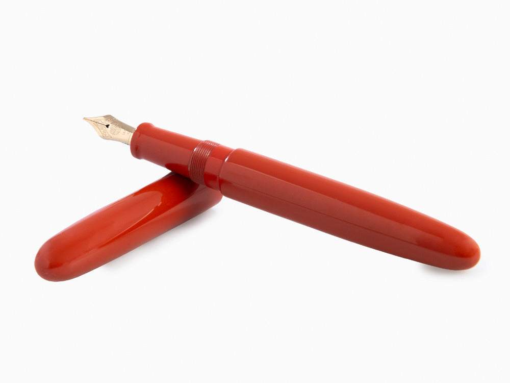• The Nakaya D-17mm Cigar Long Arai-Shu combines the tradition and art of Japanese urushi lacquer. The Japanese describe light colors with the term "Arai", while dark red is known as "Shu". Therefore, "Arai-Shu" means the brightest of the urushi colors. This pen has a 14k gold nib, providing a smooth and refined writing experience.