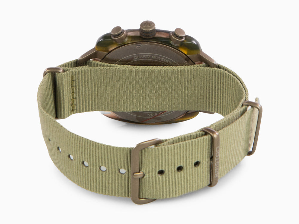 • The ideal watch for men looking for adventure. The Clubmaster Sport Jungle features a 42mm matte green wooden acetate case that gives it a sporty look and uniqueness. Briston offers an interchangeable NATO strap to fit any chic or casual outfit.