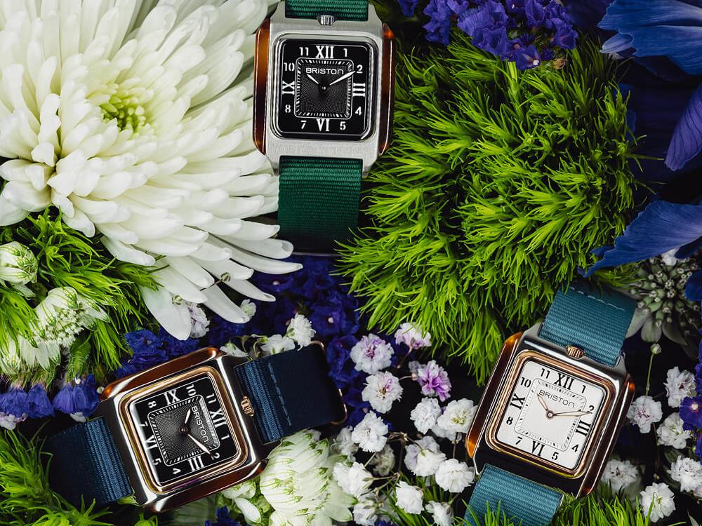 • The Briston Streamliner Kennedy HM 30 mm fuses Art Deco sophistication with preppy spirit. Its 30 × 30 mm square case in steel , topped with elegant tortoiseshell acetate flanks, evokes classic lines but with a modern twist.