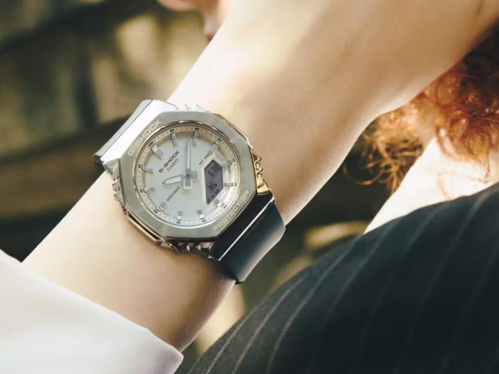 • Introducing the Casio G-Shock Classic, a compact analog-digital watch with an octagonal metal bezel and a sophisticated monochrome design. Featuring a silver dial with a textured finish and refined metallic details, it combines urban style with legendary G-Shock toughness and an elegant presence on the wrist. This model stands out for its lightweight, easy-to-wear size (45.9 × 40.5 × 11 mm and 56 g), making it ideal even for slimmer wrists, thanks to its bio-based resin strap that offers comfort and durability.