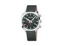 • The Swiss watch Mondaine Grand Cushion Chronograph (MSL.41460.LF.SET) convinces with its balanced proportions and easy-to-read dial thanks to the slightly convex crystal. Its 41 mm cushion-shaped polished steel case is accompanied by a domed sapphire crystal and a green vegan strap. It is water resistant to 30m and comes with an official 3-year warranty. Set with two straps: one textile and one in Milanese mesh.