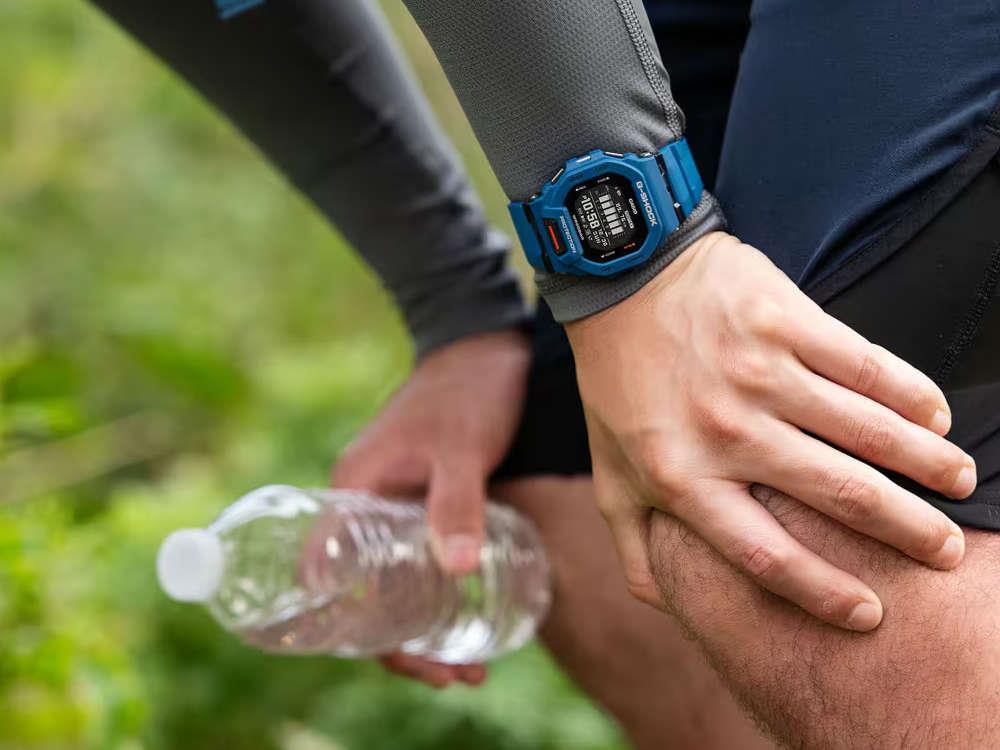 • The G-SHOCK GBD-200-2ER, with its slim, square design in navy blue, is perfect for athletes. It offers Bluetooth® connectivity to measure distance, pace and calories via its accelerometer and smartphone GPS. Shock and water resistant to 200 m, it includes step counter, timer and front light for night workouts. A mix of functionality and style.