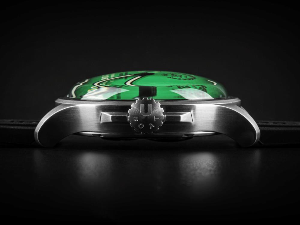 • The U-Boat Darkmoon 25° SS Green Soleil model represents the perfect harmony between chromatic freshness and structural purity.