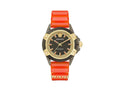 • This watch conveys an urban and sporty look at the same time. Its transparencies and colors make it unique and unisex. This Indiglo version features a 3-hand mechanism and glows in the dark.